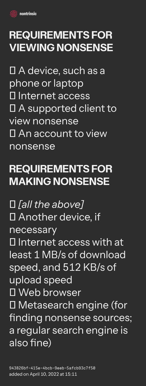 поделитьсяREQUIREMENTS FOR VIEWING NONSENSE