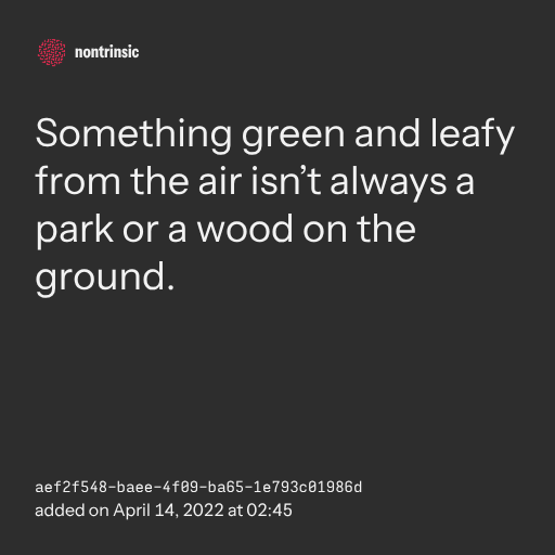 поделитьсяSomething green and leafy from the air isn’t always a park or a wood on the ground.