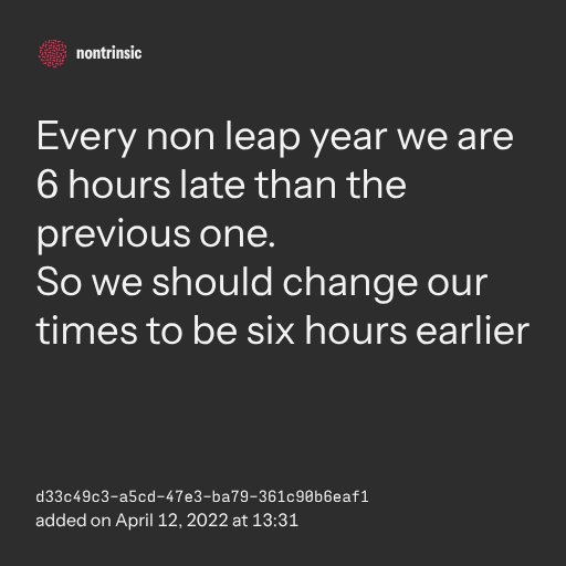 поделитьсяEvery non leap year we are 6 hours late than the previous one.