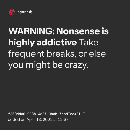 поделитьсяWARNING: Nonsense is highly addictive Take frequent breaks, or else you might be crazy.