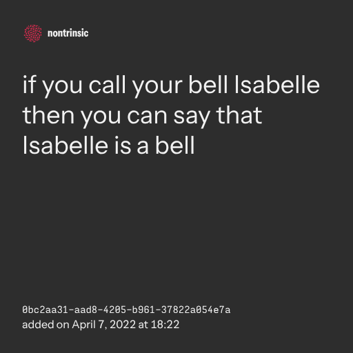 поделитьсяif you call your bell Isabelle then you can say that Isabelle is a bell