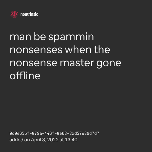 поделитьсяman be spammin nonsenses when the nonsense master gone offline