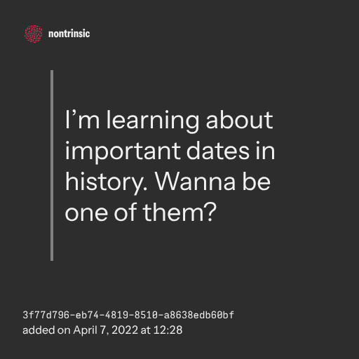 поделитьсяI’m learning about important dates in history. Wanna be one of them?