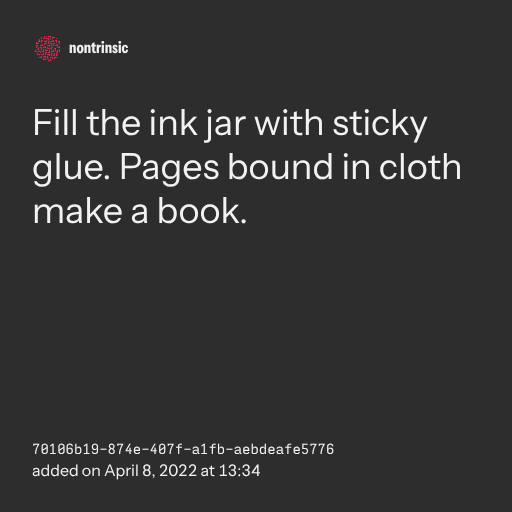 поделитьсяFill the ink jar with sticky glue. Pages bound in cloth make a book.