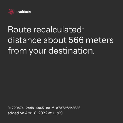 поделитьсяRoute recalculated: distance about 820 meters from your destination.