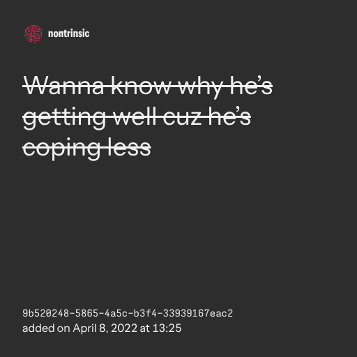 поделитьсяWanna know why he’s getting well cuz he’s coping less