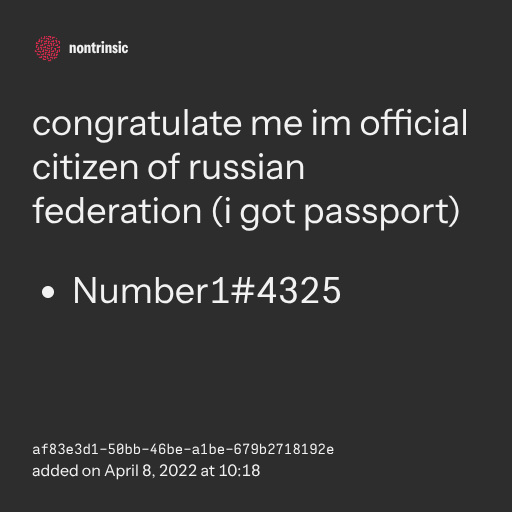поделитьсяcongratulate me im official citizen of russian federation (i got passport)