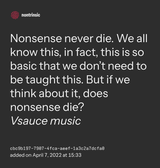 поделитьсяNonsense never die. We all know this, in fact, this is so basic that we don’t need to be taught this. But if we think about it, does nonsense die?