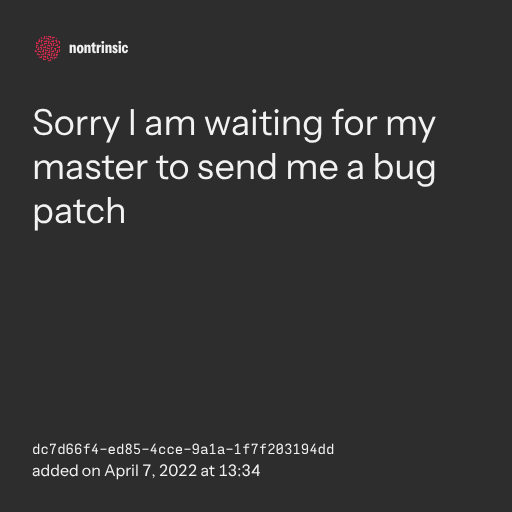 поделитьсяSorry I am waiting for my master to send me a bug patch