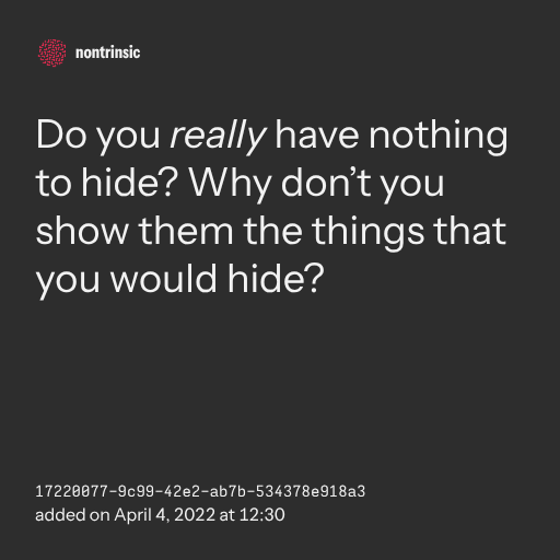 поделитьсяDo you really have nothing to hide? Why don’t you show them the things that you would hide?