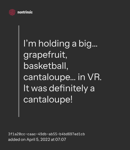 поделитьсяI’m holding a big… grapefruit, basketball, cantaloupe… in VR. It was definitely a cantaloupe!