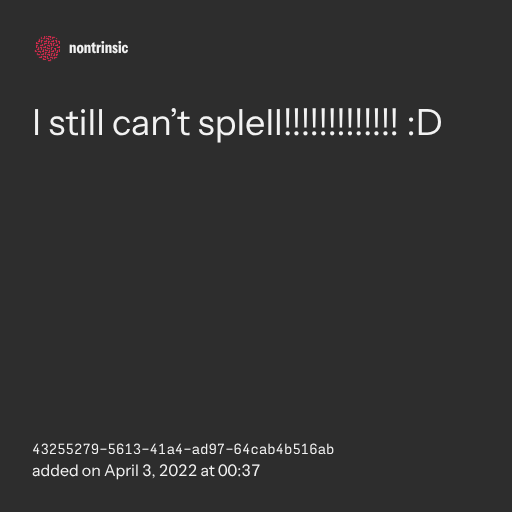 поделитьсяI still can’t splell!!!!!!!!!!!!! :D