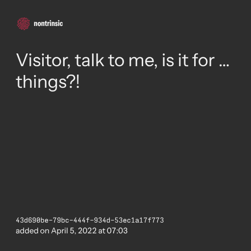 поделитьсяVisitor, talk to me, is it for … things?!