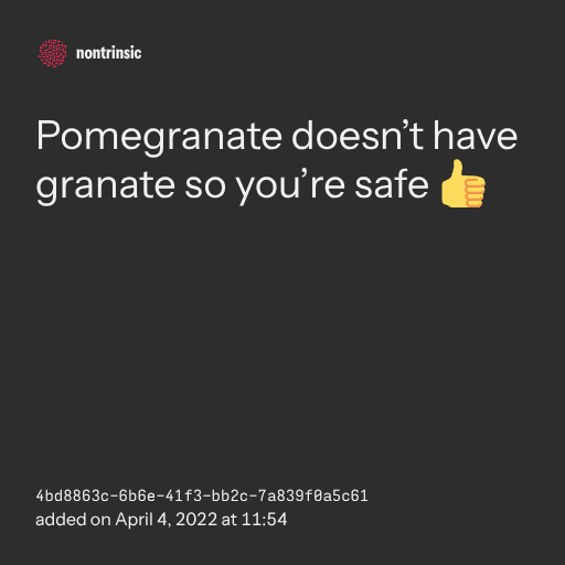 поделитьсяPomegranate doesn’t have granate so you’re safe 👍