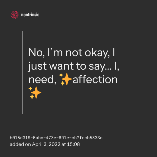 поделитьсяNo, I’m not okay, I just want to say… I, need, ✨affection✨