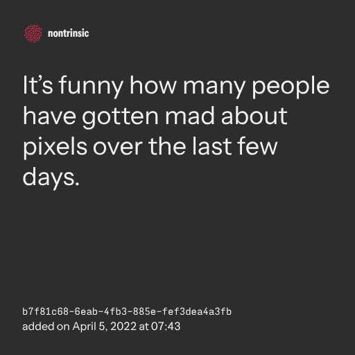 поделитьсяIt’s funny how many people have gotten mad about pixels over the last few days.