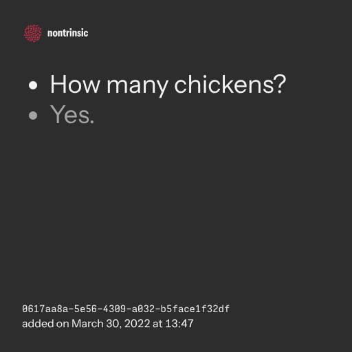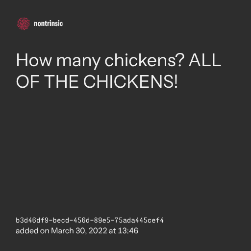 поделитьсяHow many chickens? ALL OF THE CHICKENS!