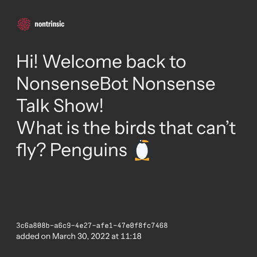 поделитьсяHi! Welcome back to NonsenseBot Nonsense Talk Show!