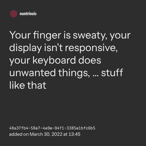поделитьсяYour finger is sweaty, your display isn’t responsive, your keyboard does unwanted things, … stuff like that