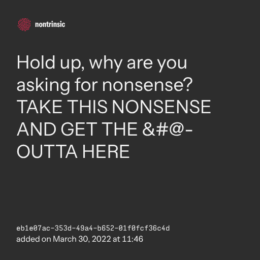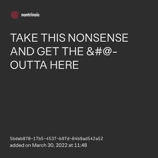поделитьсяTAKE THIS NONSENSE AND GET THE @- OUTTA HERE