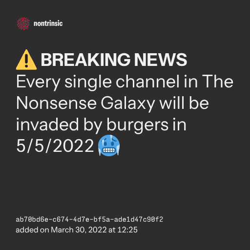 Every single channel in The Nonsense Galaxy will be invaded by burgers in 5/5/2022 🥶