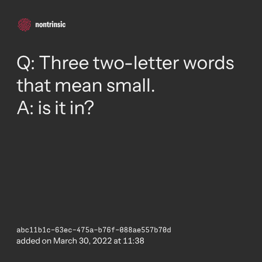 поделитьсяQ: Three two-letter words that mean small.