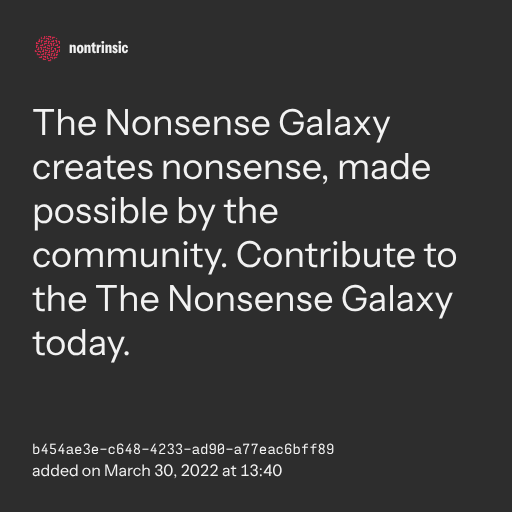 поделитьсяThe Nonsense Galaxy creates nonsense, made possible by the community. Contribute to the The Nonsense Galaxy today.