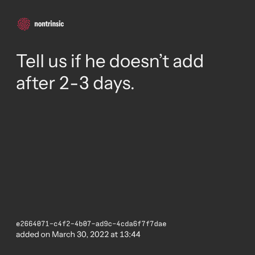 поделитьсяTell us if he doesn’t add after 2-3 days.