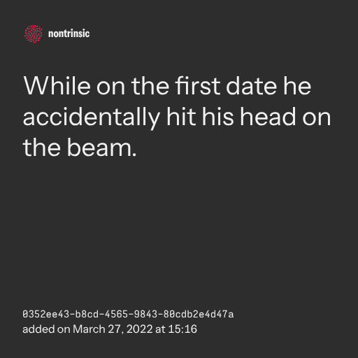 поделитьсяWhile on the first date he accidentally hit his head on the beam.