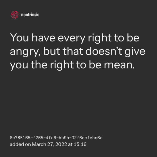 поделитьсяYou have every right to be angry, but that doesn’t give you the right to be mean.