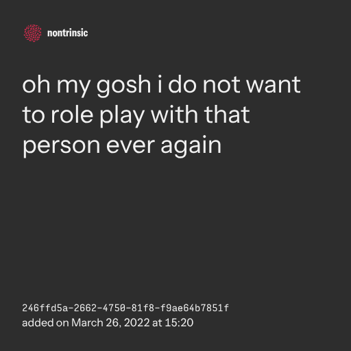 поделитьсяoh my gosh i do not want to role play with that person ever again