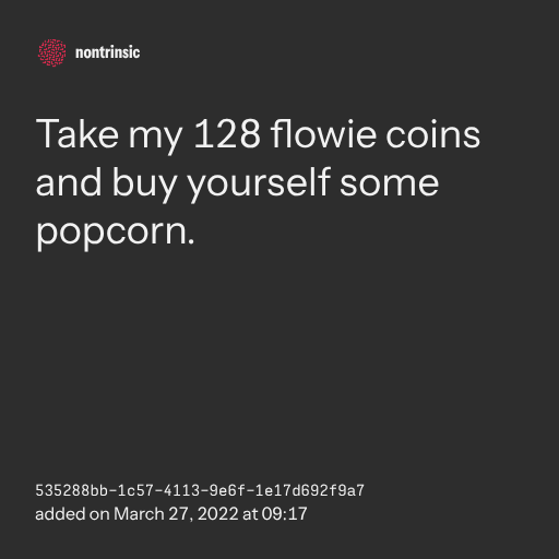 поделитьсяTake my 476 flowie coins and buy yourself some popcorn.