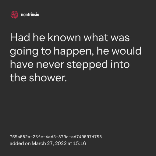 поделитьсяHad he known what was going to happen, he would have never stepped into the shower.