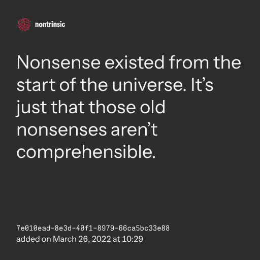 поделитьсяNonsense existed from the start of the universe. It’s just that those old nonsenses aren’t comprehensible.