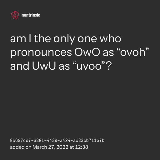 поделитьсяam I the only one who pronounces OwO as “ovoh” and UwU as “uvoo”?