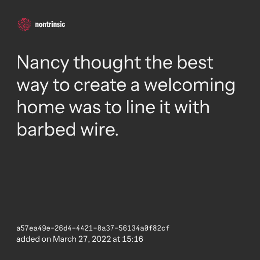 поделитьсяNancy thought the best way to create a welcoming home was to line it with barbed wire.