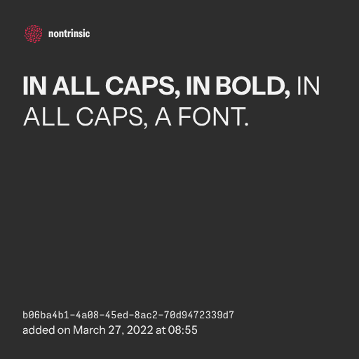 поделитьсяIN ALL CAPS, IN BOLD, IN ALL CAPS, A FONT.