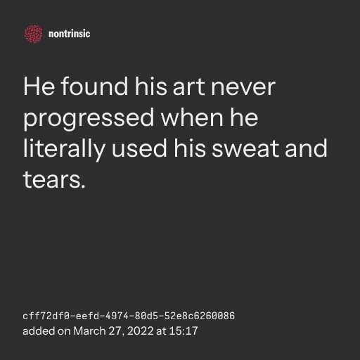 поделитьсяHe found his art never progressed when he literally used his sweat and tears.