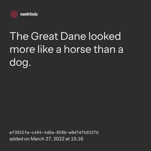 поделитьсяThe Great Dane looked more like a horse than a dog.