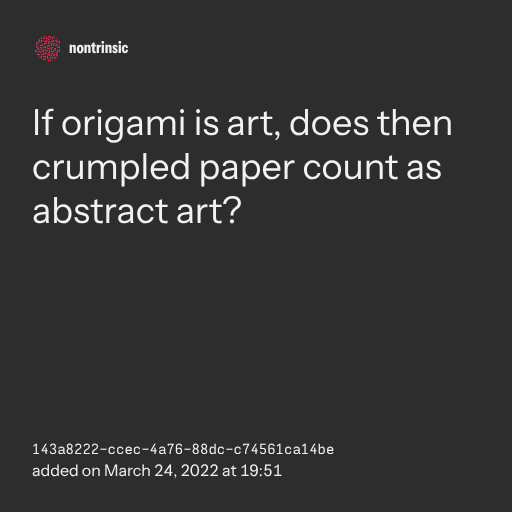 поделитьсяIf origami is art, does then crumpled paper count as abstract art?