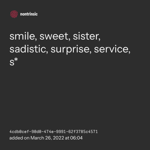 поделитьсяsmile, sweet, sister, sadistic, surprise, service, s*