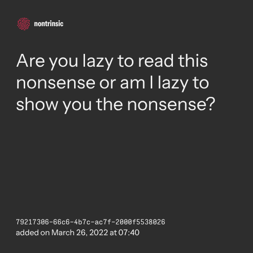 поделитьсяAre you lazy to read this nonsense or am I lazy to show you the nonsense?