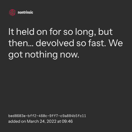 поделитьсяIt held on for so long, but then… devolved so fast. We got nothing now.