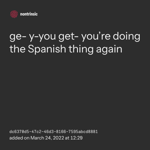 поделитьсяge- y-you get- you’re doing the Spanish thing again