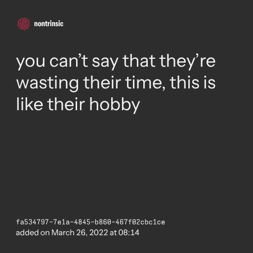 поделитьсяyou can’t say that they’re wasting their time, this is like their hobby