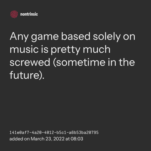 поделитьсяAny game based solely on music is pretty much screwed (sometime in the future).