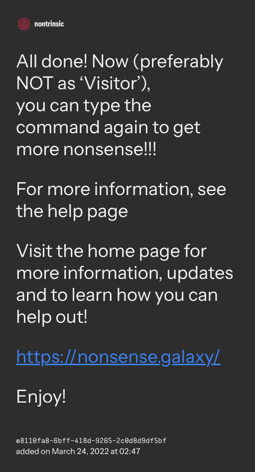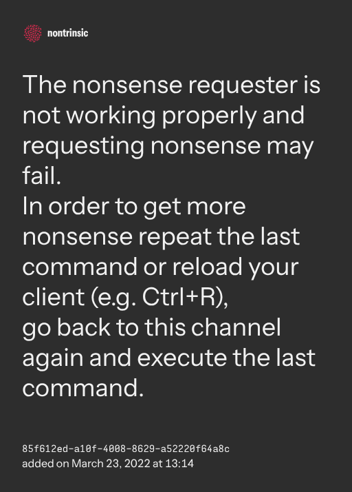 In order to get more nonsense repeat the last command or reload your client (e.g. Ctrl+R),