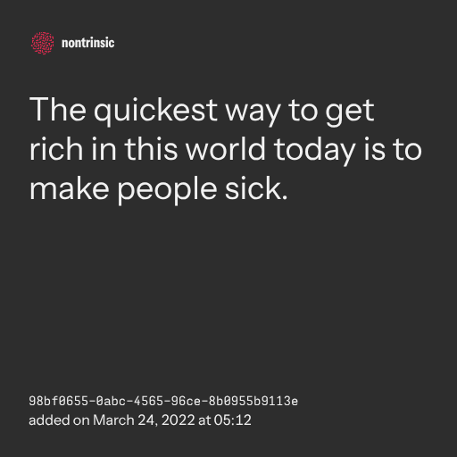 поделитьсяThe quickest way to get rich in this world today is to make people sick.