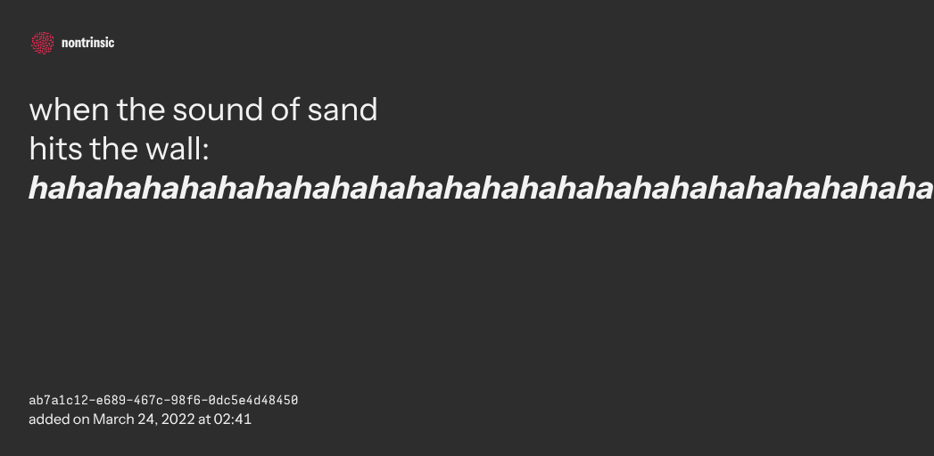 поделитьсяwhen the sound of sand hits the wall: hahahahahahahahahahahahahahahahahahahahahahahaha