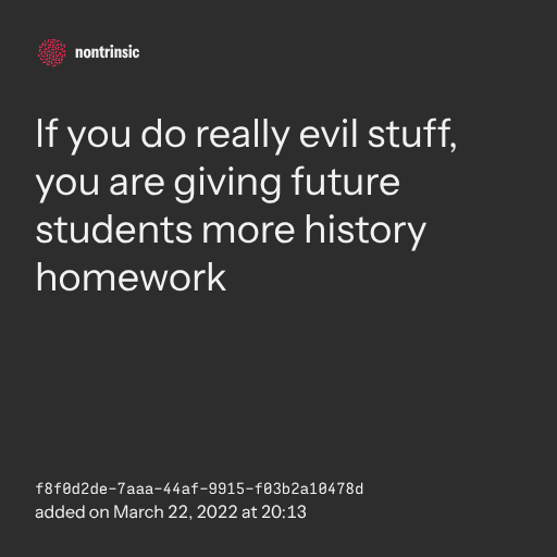 поделитьсяIf you do really evil stuff, you are giving future students more history homework